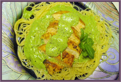 Chicken Breast over Pesto Cream Pasta